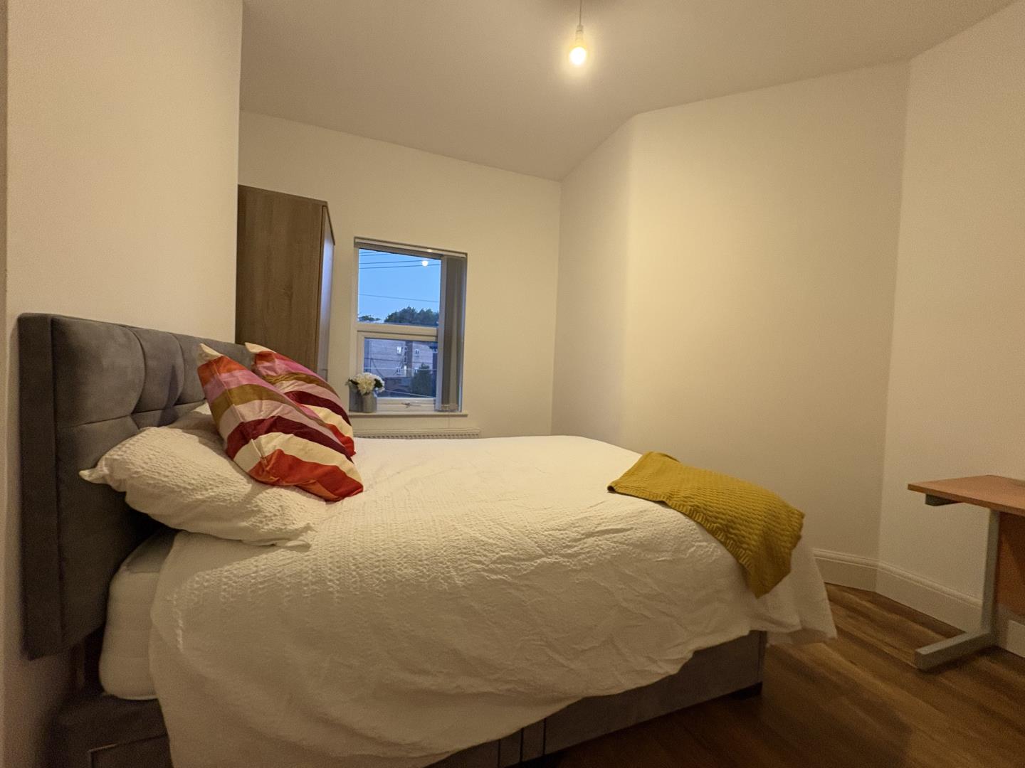 Accommodation Overview: • Spacious double room, fully furnished to the highest standard. • Ample room for a desk/study/work-from-home area, providing a versatile living space. • Shared communal areas include a stylish lounge/diner, two modern shower rooms, and not one, but two fully fitted contemporary kitchens with integrated appliances. • Additional utility area equipped with a washing machine and dryer for your convenience.